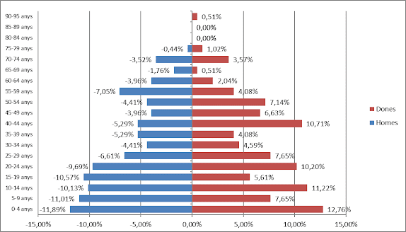 14. Piràmide d’edat de Vallclara en el Padró de 1873.
