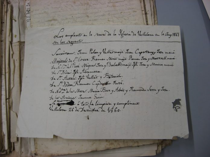 “Los empleats en lo servei de la Iglesia de Vallclara en lo any 1861 son los seguents: